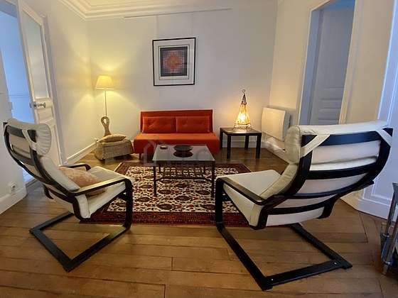 In order to share your meals in a convivial atmosphere during your stay in Paris, this apartment offers a pleasant dining room that can welcome up to 4 guests thanks to its dining table, shelves, fireplace, 4 chair(s).