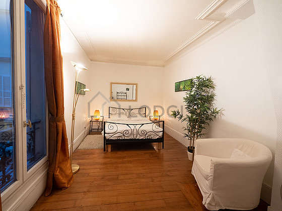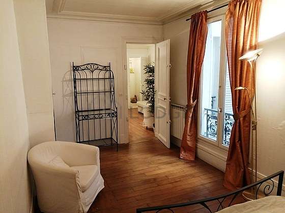 Living roomThis apartment consists of a beautiful living room with wooden floor and its windows. This very quiet living room is furnished and equipped for a comfortable stay: tv, sofa, 1 armchair(s), wardrobe, closet.