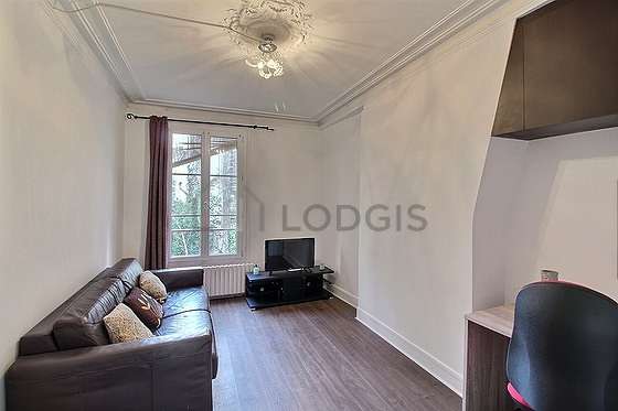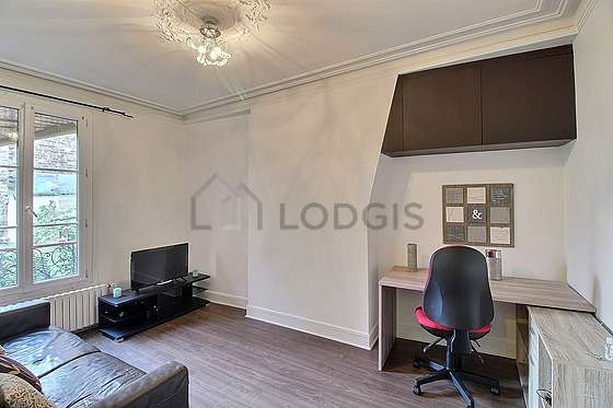 This apartment consists of a fabulous living room with wooden floor and its windows. This very quiet living room is furnished and equipped for a comfortable stay: tv, desk.