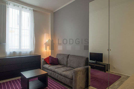 This apartment consists of a charming living room with wooden floor and its double-glazed windows and view on road. This quiet living room is furnished and equipped for a comfortable stay: tv, linen, quilt, coffee table, storage space, cupboard1 sofabed(s) of 140cm.