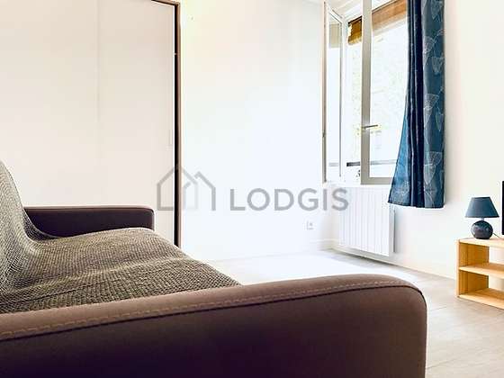 Living roomThis apartment consists of a beautiful living room with wooden floor and its windows. This very quiet living room is furnished and equipped for a comfortable stay: tv, linen, quilt, sofa, dining table, cupboard, crockery, 1 chair(s)1 sofabed(s) of 140cm.
