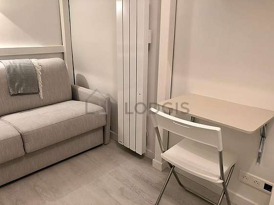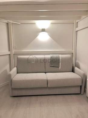 Living roomThis apartment consists of a living room its windows. This living room is furnished and equipped for a comfortable stay: linen, sofa, dining table, shelves, closet, cupboard, crockery, stool, bedside table1 loft bed(s) of 140cm, 1 bed(s) of 160cm.