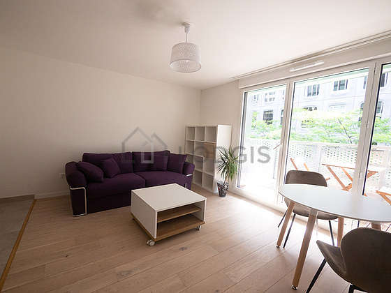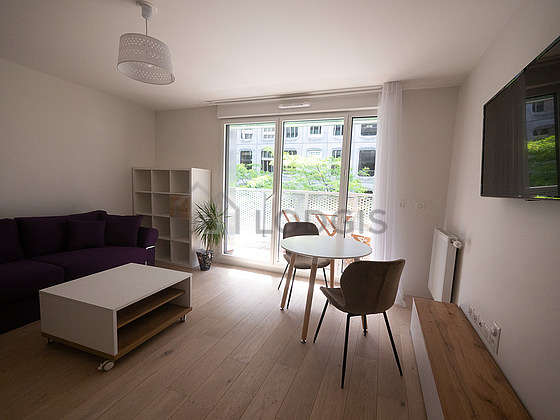 This apartment consists of a fabulous living room with wooden floor and its windows. This very quiet living room is furnished and equipped for a comfortable stay: tv, quilt, dining table, 1 chair(s)1 sofabed(s) of 150cm.