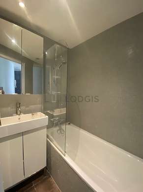 This apartment is equipped with a great bathroom and very bright. This bathroom is furnished with all the equipment you need for a comfortable stay: bath tub. The toilets are separated from the bathroom and located in an independant room.