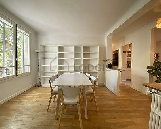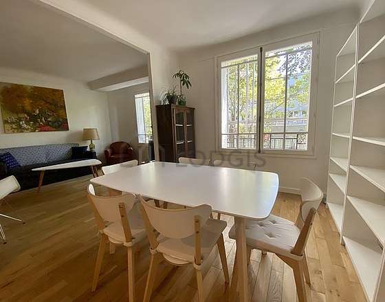 Dining roomIn order to share your meals in a convivial atmosphere during your stay parisian, this apartment offers a great dining room that can welcome up to 6 guests thanks to its dining table, bookcase, closet, 6 chair(s).