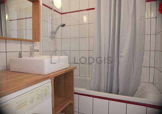 This apartment is equipped with a great bathroom and very bright. This bathroom is furnished with all the equipment you need for a comfortable stay: cupboard, bath tub, sink, mirror. The toilets are separated from the bathroom and located in an independant room.