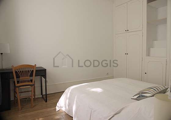 In order to share your meals in a convivial atmosphere during your stay in Paris, this apartment offers a great dining room that can welcome up to 4 guests thanks to its dining table, bookcase, shelves, 4 chair(s), bedside table, lamp, mirror, painting.
