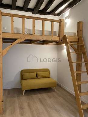 Living roomThis apartment consists of a pleasant living room with wooden floor and its windows. This quiet living room is furnished and equipped for a comfortable stay: sofa, cupboard1 loft bed(s) of 140cm.