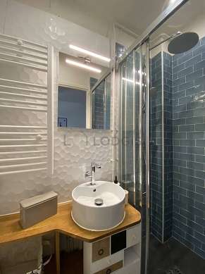 This apartment is equipped with a great bathroom and bright. This bathroom is furnished with all the equipment you need for a comfortable stay: bath towels, shelves, separate shower, sink, sink, mirror, towel rack, towel drying radiator. The toilets are located in the bathroom.