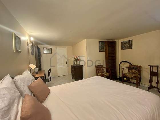 With tile floor and its windows and view on road, this charming room offre provides the necessary equipment for you to serenely rest during your stay: quilt, 1 armchair(s), desk, bookcase, closet, storage space, cupboard, 1 chair(s), bedside table, airer, lamp, painting1 bed(s) of 140cm.
