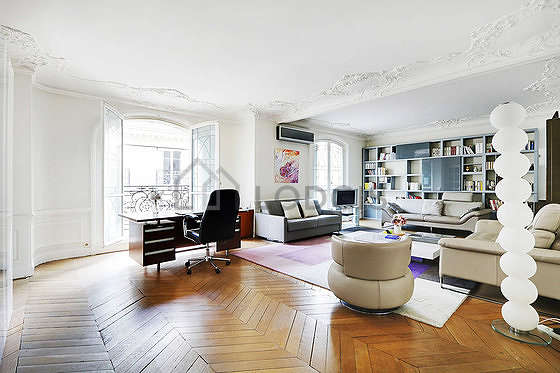 Living roomThis apartment consists of a beautiful living room with wooden floor and its windows with balcony. This very quiet living room is furnished and equipped for a comfortable stay: tv, sofa, 1 armchair(s), desk, 1 chair(s)1 sofabed(s) of 160cm.