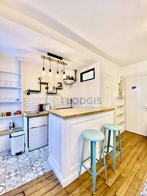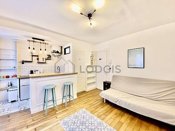 Living roomThis apartment consists of a beautiful living room with wooden floor and its double-glazed windows. This very quiet living room is furnished and equipped for a comfortable stay: tv, coffee table, cupboard, bar1 sofabed(s) of 140cm.