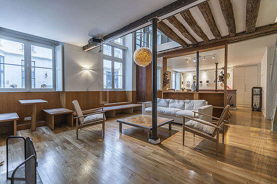 In order to share your meals in a convivial atmosphere during your stay in Paris, this duplex offers a dining room.