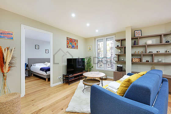 Living roomThis apartment consists of a living room its windows. This living room is furnished and equipped for a comfortable stay: dining table, 1 chair(s)1 sofabed(s) of 90cm.