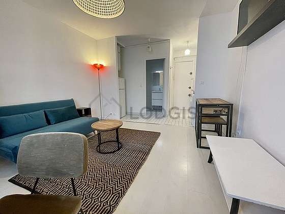 Living roomThis apartment consists of a living room its windows. This living room is furnished and equipped for a comfortable stay: tv, quilt, refrigerator, dining table, desk, shelves, closet, cupboard, 1 chair(s), stool, bedside table, floor lamp, mirror, carpet1 sofabed(s) of 130cm.
