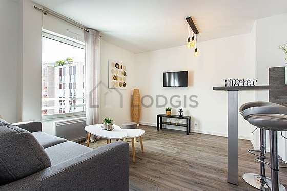 This apartment consists of a living room its windows. This living room is furnished and equipped for a comfortable stay: tv, sofa, coffee table, 1 chair(s).