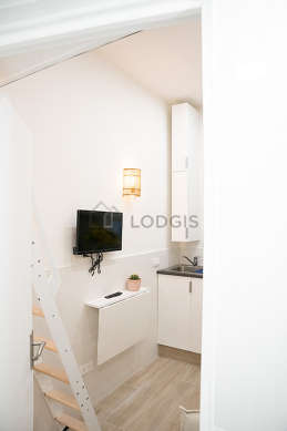 Thanks to its lovely height-under-ceiling, amezzanine was set up in this apartment , thus offering you an extra room supplementary equipped with linen, quilt, lamp.