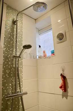Living roomThis apartment consists of a wonderful living room with wooden floor and its double-glazed windows. This very quiet living room is furnished and equipped for a comfortable stay: sofa, coffee table, bookcase, shelves, storage space, floor lamp, lamp.