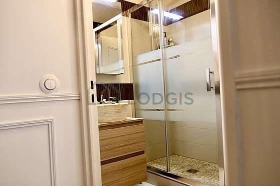 This apartment is equipped with a great bathroom and very bright. This bathroom is furnished with all the equipment you need for a comfortable stay: shelves, separate shower, sink, towel drying radiator. The toilets are separated from the bathroom and located in an independant room.