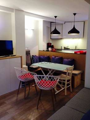 This apartment consists of kitchen and all the essential equipment for your daily life: hob, refrigerator, freezer, oven, microwave oven, extractor hood, kettle, coffee-maker, cupboard, crockery, bar.