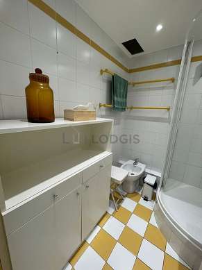 This apartment is equipped with a bathroom. This bathroom is furnished with all the equipment you need for a comfortable stay: cupboard, separate shower, sink. The toilets are separated from the bathroom and located in an independant room.