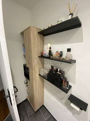 Living roomThis apartment consists of a beautiful living room with wooden floor and its double-glazed windows. This very quiet living room is furnished and equipped for a comfortable stay: tv, sofa, coffee table, shelves.