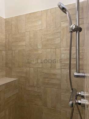 This apartment is equipped with a bathroom. This bathroom is furnished with all the equipment you need for a comfortable stay: separate shower, sink, towel rack, bin. The toilets are separated from the bathroom and located in an independant room.