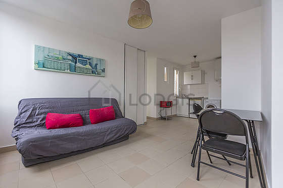 Living roomThis apartment consists of a wonderful living room with tile floor and its windows. This very quiet living room is furnished and equipped for a comfortable stay: sofa, 1 chair(s), bar1 sofabed(s) of 110cm.