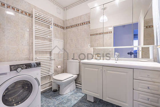 This apartment is equipped with a great bathroom and very bright. This bathroom is furnished with all the equipment you need for a comfortable stay: separate shower, airer, sink, mirror, bin, towel drying radiator, carpet, ventilator. The toilets are located in the bathroom.