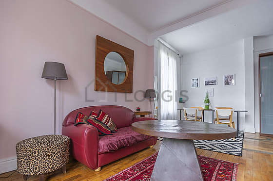 Living roomThis apartment consists of a wonderful living room with wooden floor and its double-glazed windows. This very quiet living room is furnished and equipped for a comfortable stay: tv, sofa, 1 armchair(s), dining table, coffee table, 1 chair(s).