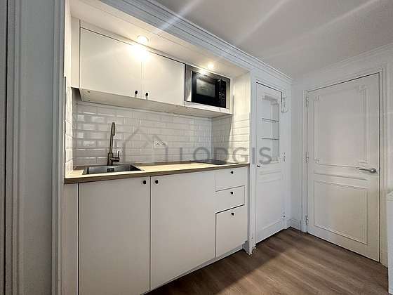 This apartment consists of beautiful kitchen with wooden floor and all the necessary equipment for your daily life: hob, refrigerator, freezer, combined microwave oven, cupboard, crockery.