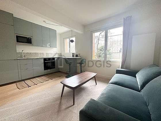 Living roomThis apartment consists of a living room its windows. This living room is furnished and equipped for a comfortable stay.