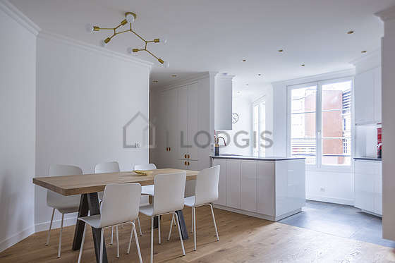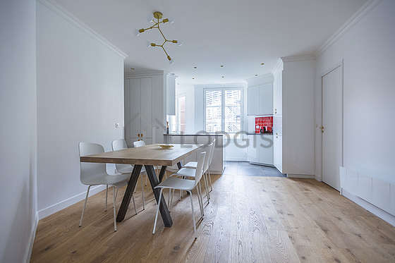 In order to share your meals in a convivial atmosphere during your stay parisian, this apartment offers a dining room thanks to its dining table, bookcase, 1 chair(s).