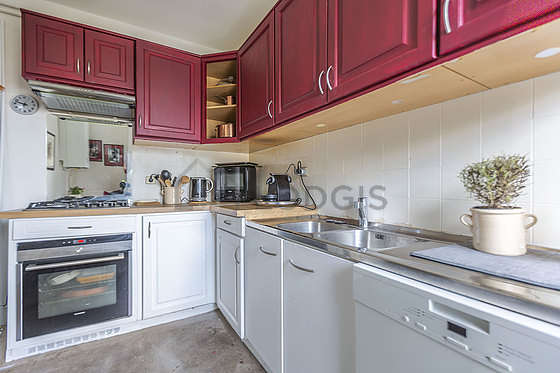 In order to share your meals in a convivial atmosphere during your stay in Paris, this apartment offers a dining room thanks to its tv, dining table, bookcase, 1 chair(s).