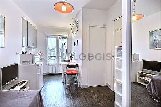 This apartment consists of kitchen and all the essential equipment for your daily life: hob, refrigerator, combined microwave oven, extractor hood, dining table, cupboard, crockery, 1 chair(s), floor lamp, bin.