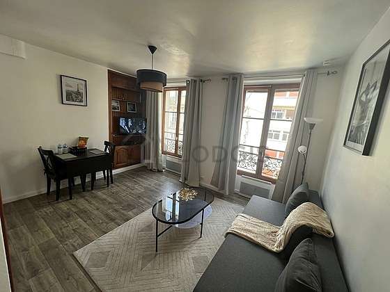 Living roomThis apartment consists of a attractive living room with wooden floor and its windows. This quiet living room is furnished and equipped for a comfortable stay: tv, linen, quilt, sofa, dining table, coffee table, cupboard, 1 chair(s)1 sofabed(s) of 140cm.