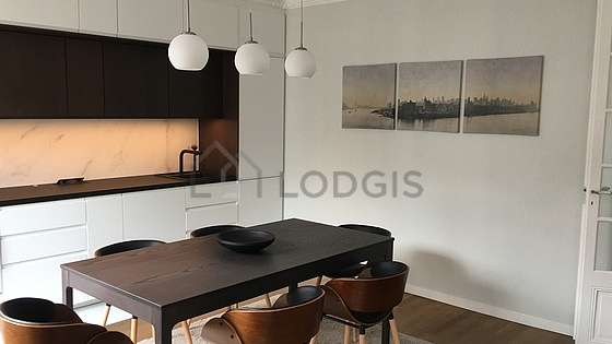 Living roomThis apartment consists of a living room with wooden floor and its double-glazed windows. This living room is furnished and equipped for a comfortable stay: tv, sofa, dining table, coffee table, storage space, 1 chair(s).