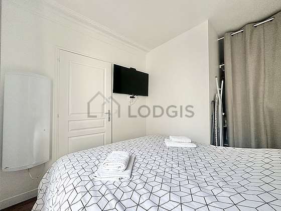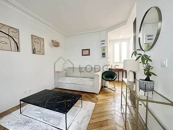 Living roomThis apartment consists of a wonderful living room with wooden floor and its double-glazed windows and view on courtyard. This very quiet living room is furnished and equipped for a comfortable stay: tv, linen, quilt, sofa, 1 armchair(s), coffee table, desk, shelves, 1 chair(s)1 sofabed(s) of 140cm.