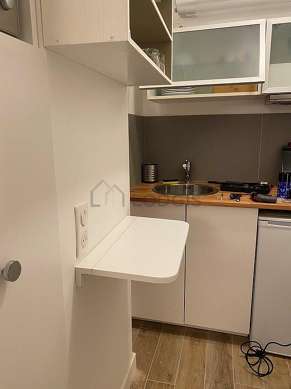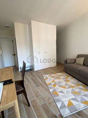Living roomThis apartment consists of a fabulous living room with wooden floor and its windows. This very quiet living room is furnished and equipped for a comfortable stay: tv, sofa, desk, cupboard, 1 chair(s)1 sofabed(s) of 110cm.