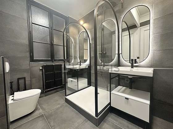 This apartment is equipped with a pleasant bathroom and bright. This bathroom is furnished with all the equipment you need for a comfortable stay: separate shower, sink, towel drying radiator. The toilets are separated from the bathroom and located in an independant room.