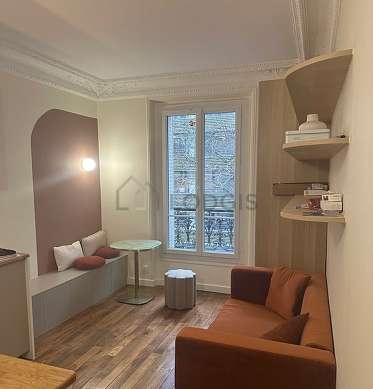 Living roomThis apartment consists of a living room its double-glazed windows. This living room is furnished and equipped for a comfortable stay: tv, sofa, 1 armchair(s), shelves, closet, cupboard, tv stand.