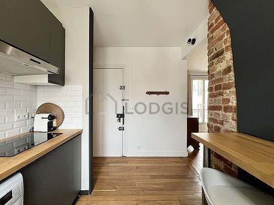 This apartment consists of kitchen and all the essential equipment for your daily life: hob, refrigerator, combined microwave oven, toaster, dining table, crockery, stool, sink.