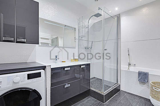 This apartment is equipped with a bathroom. This bathroom is furnished with all the equipment you need for a comfortable stay: bath tub, separate shower, sink, mirror, towel drying radiator. The toilets are separated from the bathroom and located in an independant room.