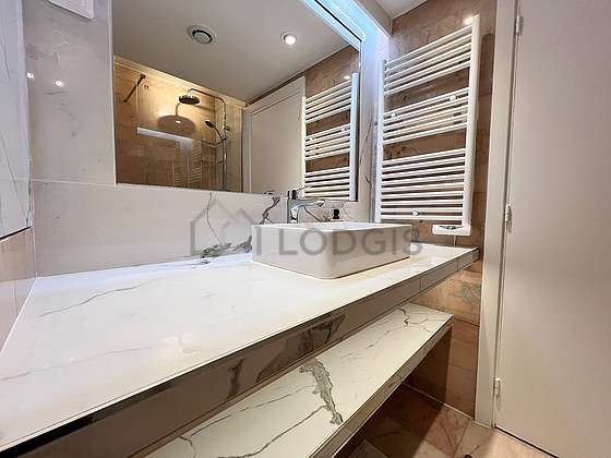 This apartment is equipped with a bathroom. This bathroom is furnished with all the equipment you need for a comfortable stay: cupboard, separate shower, sink. The toilets are separated from the bathroom and located in an independant room.