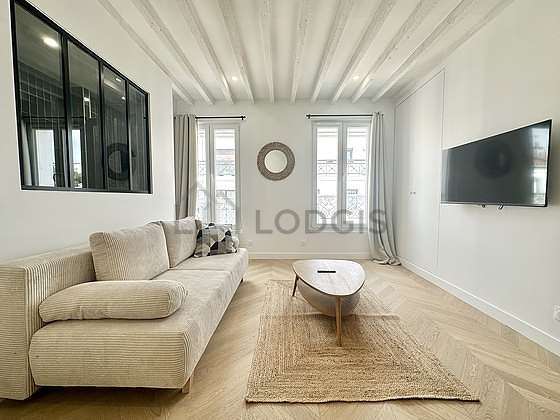 Living roomThis apartment consists of a pleasant living room with wooden floor and its windows. This quiet living room is furnished and equipped for a comfortable stay: tv, coffee table, cupboard1 sofabed(s) of 140cm.
