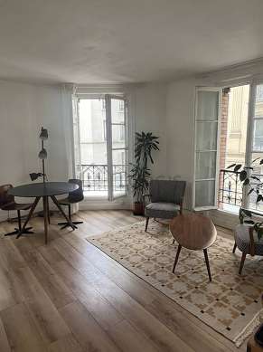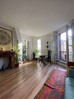 Living roomThis apartment consists of a attractive living room with wooden floor and its windows. This quiet living room is furnished and equipped for a comfortable stay: iron, vacuum cleaner, sofa, 2 armchair(s), dining table, coffee table, 1 chair(s).