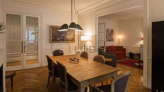 In order to share your meals in a convivial atmosphere during your stay parisian, this apartment offers a dining room that can welcome up to 6 guests thanks to its dining table, sideboard, 6 chair(s).