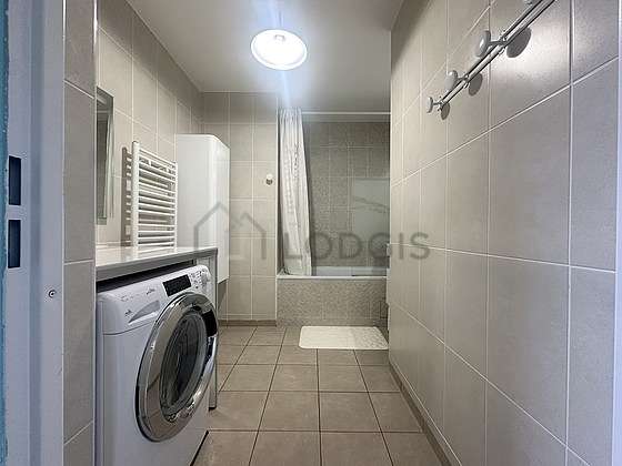 This apartment is equipped with a pleasant bathroom and bright. This bathroom is furnished with all the equipment you need for a comfortable stay: shelves, bath tub, hair-dryer, sink, towel drying radiator. The toilets are separated from the bathroom and located in an independant room.