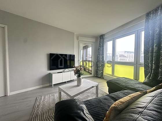This apartment consists of a pleasant living room with wooden floor and its double-glazed windows. This quiet living room is furnished and equipped for a comfortable stay: tv, sofa, coffee table, tv stand.