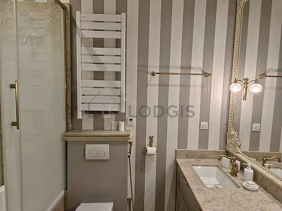 This apartment is equipped with a bathroom. This bathroom is furnished with all the equipment you need for a comfortable stay: bath tub, towel drying radiator. The toilets are located in the bathroom.